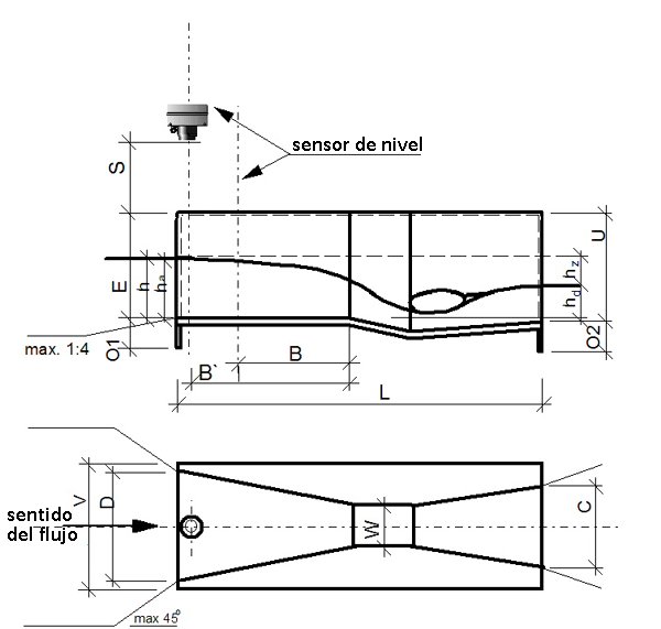 La medición del caudal se basa en el principio de que el flujo crítico se produce al constreñir el ancho en la garganta y luego elevar el fondo. El flujo cambia de subcrítico a supercrítico lo que hace posible determinar el flujo de descarga con una única medición de la altura de lámina de agua en el tramo de ataque.